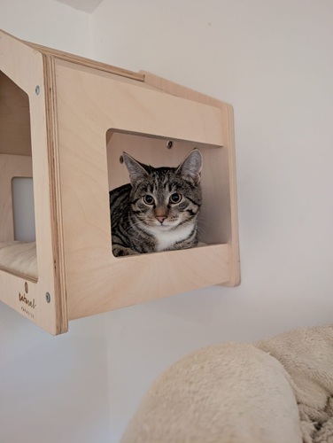 In der Pflegestelle wurde er recht schnell zugänglich. Er liebt es, gestreichelt zu werden, wenn er Vertrauen gefasst hat. Gerne beobachtet er das Geschehen um sich herum vom Kratzbaum aus.