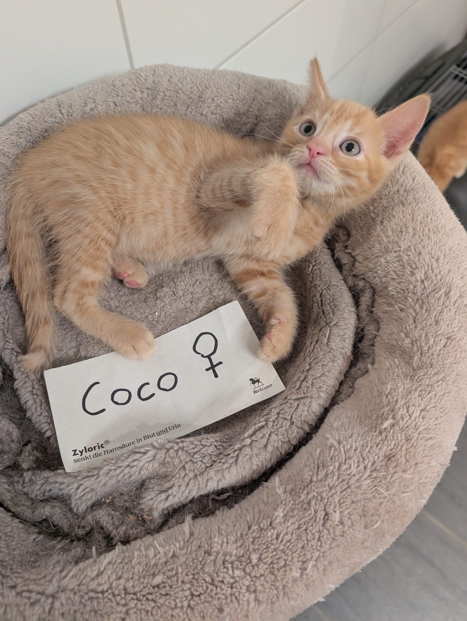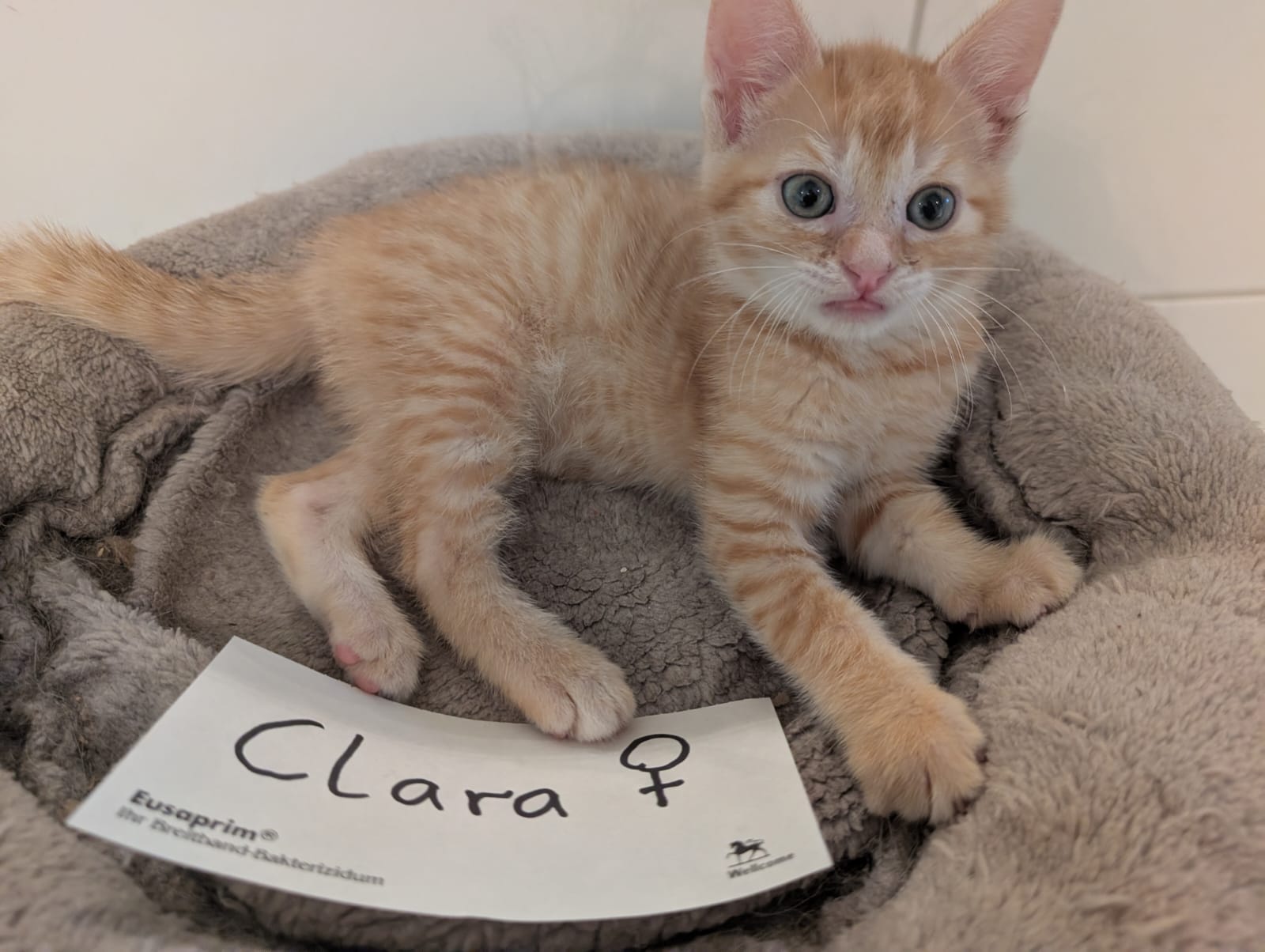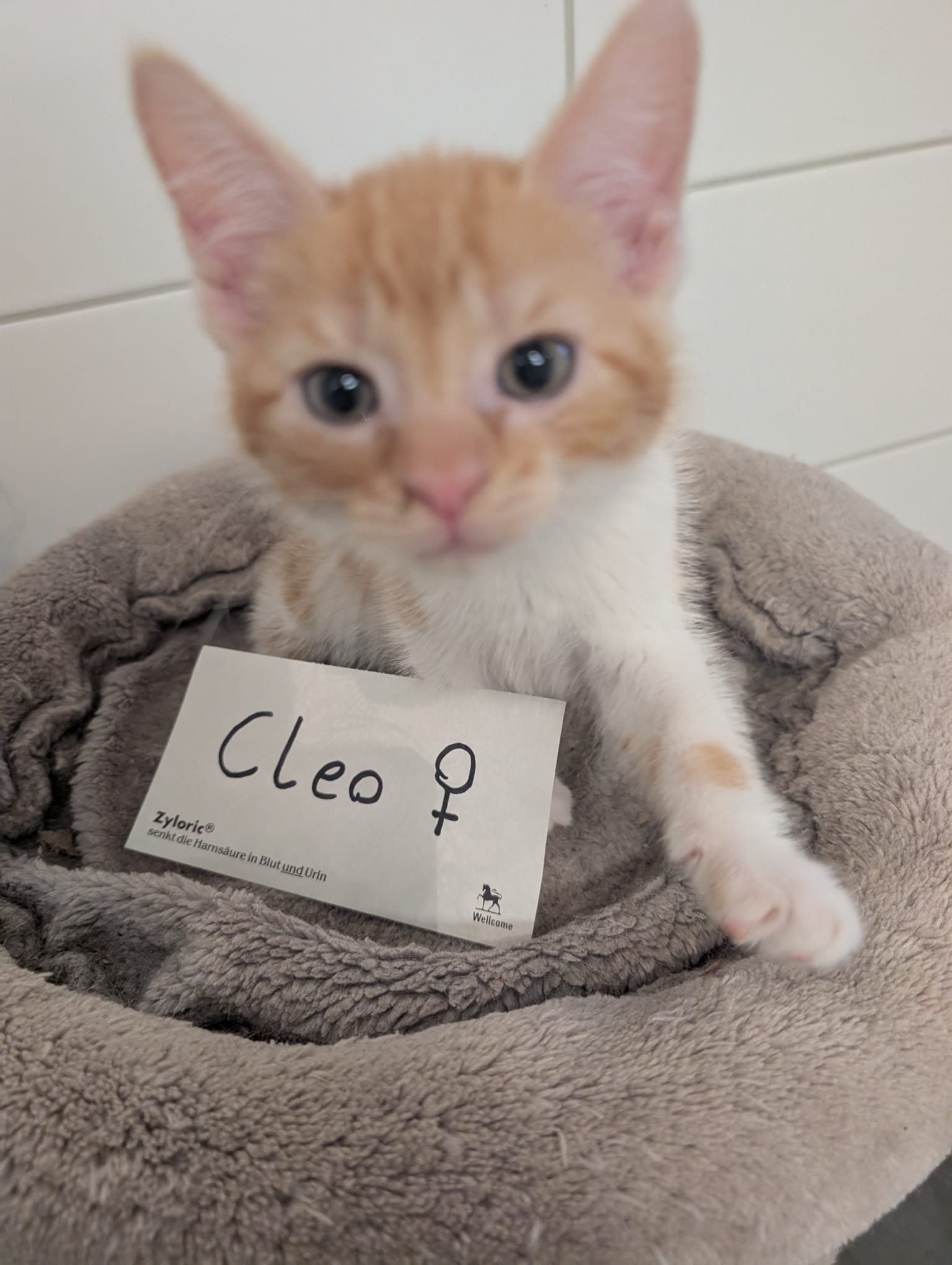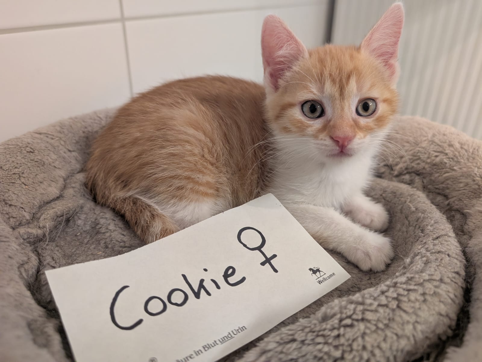 Amber ist noch etwas zurückhaltender als ihr Bruder Archie. Langsam taut sie aber auf und lässt sich streicheln. Zur Fütterungszeit ist dann aber alle Scheu vergessen. Sie erkundet vorsichtig alles Neue und spielt gerne.