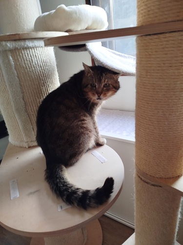 In der Pflegestelle wurde er recht schnell zugänglich. Er liebt es, gestreichelt zu werden, wenn er Vertrauen gefasst hat. Gerne beobachtet er das Geschehen um sich herum vom Kratzbaum aus.