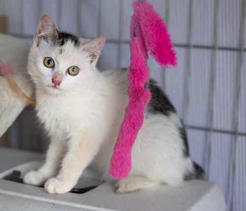Cynthia wurde ca. im März 2025 geboren. Im Zuge einer Kastrationsaktion auf einem Hof kam sie zu uns, und zwar in schlechtem Allgemeinzustand. Cynthia war völlig mangelernährt. Glücklicherweise hat sie sich erholt - dank der guten Pflege ihrer Pflegedosine.