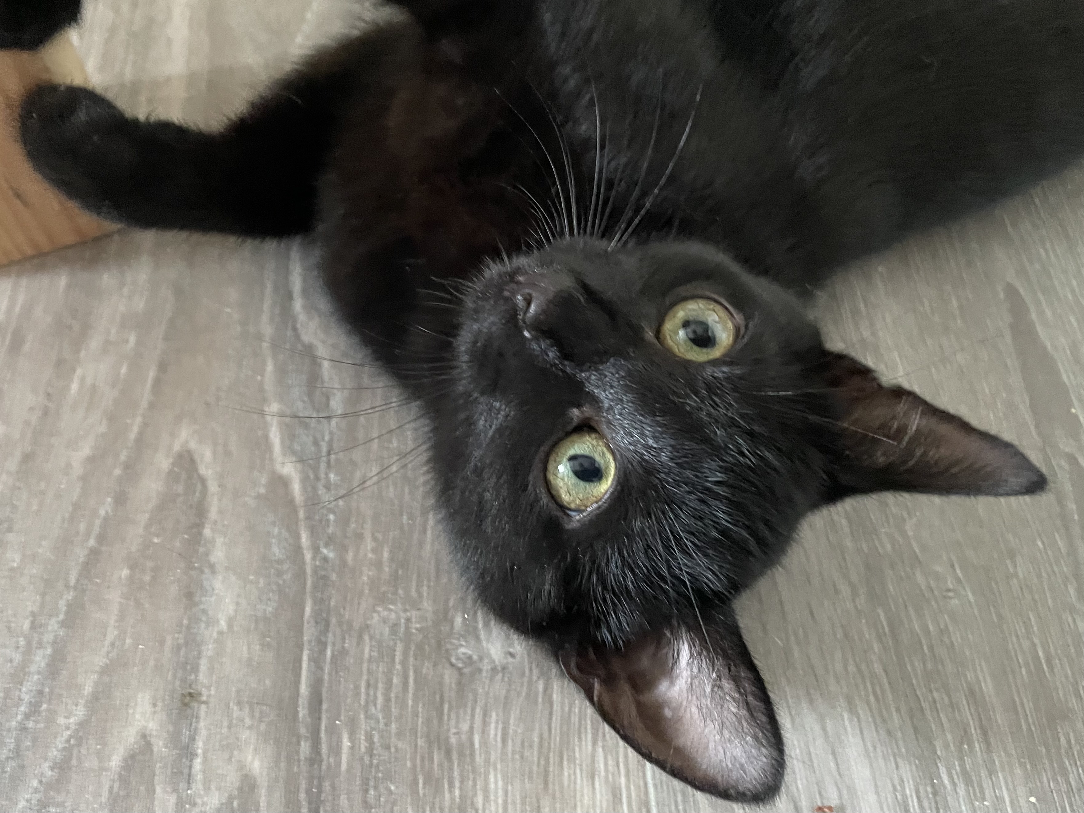 Leni wurde ca. im Mai 2025 geboren und tauchte mutterseelenallein vor einer Pizzeria auf. Die besorgte Finderin brachte Leni zu uns.